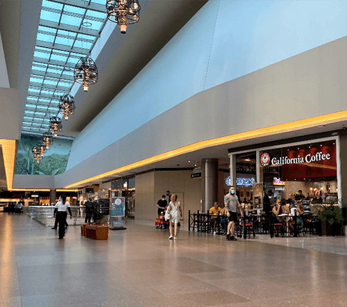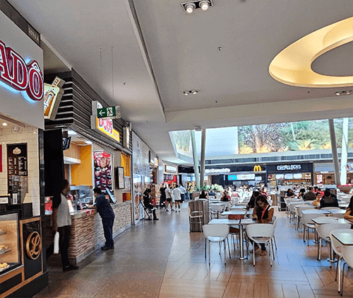 Entre as opções, os visitantes encontram hambúrgueres, pizzas, sanduíches naturais, saladas, sobremesas e cafeterias, garantindo variedade para diferentes gostos e estilos de vida. Além disso, o ambiente é amplo, moderno e bem estruturado, oferecendo conforto e praticidade para quem deseja fazer uma refeição rápida ou descansar entre um passeio e outro.